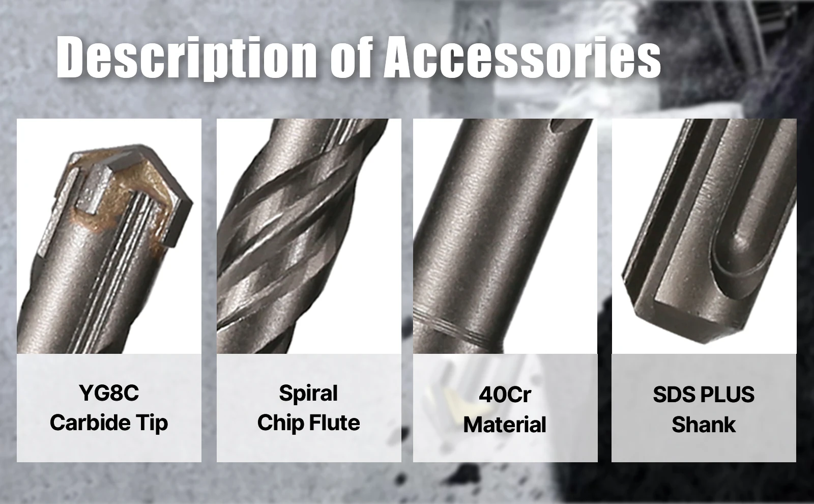 5PCS SDS PLUS Shank 110mm Length Carbide Masonry Drill Bits