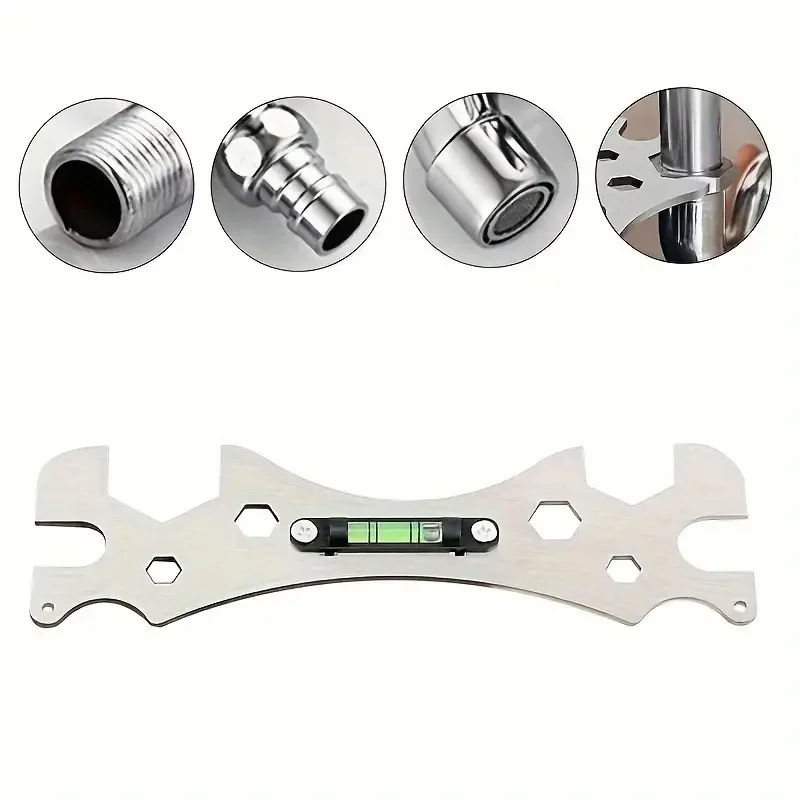 Introducing the ultimate multi-function wrench for all your maintenance and installation needs. This lightweight and compact tool is designed to be easy to carry and use, making it perfect for DIY enthusiasts and professionals alike. With its versatile applications, you can use it on kitchen faucets, bathroom faucets, and showerheads. Made from durable stainless steel, this wrench is built to withstand the test of time. Plus, with its horizontal adjustment feature and a range of hex screw sizes, you'll have everything you need to tackle a variety of tasks. Don't miss out on this essential addition to your toolkit – order your multi-function wrench today!